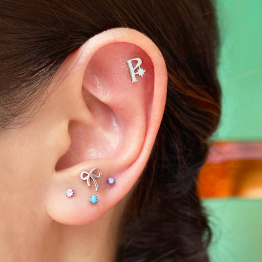PiJi 'P' Monogram Flatback Titanium Earring