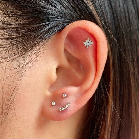 Silver CZ Six-Petal Flower Flatback Titanium Earring