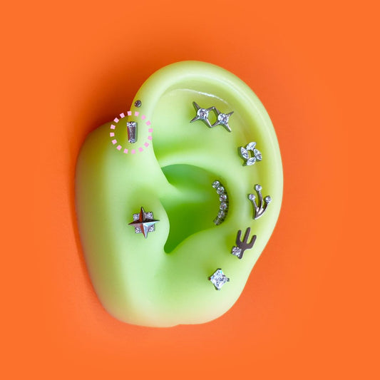 Spike Drop CZ RectangleFlatback Titanium Earring